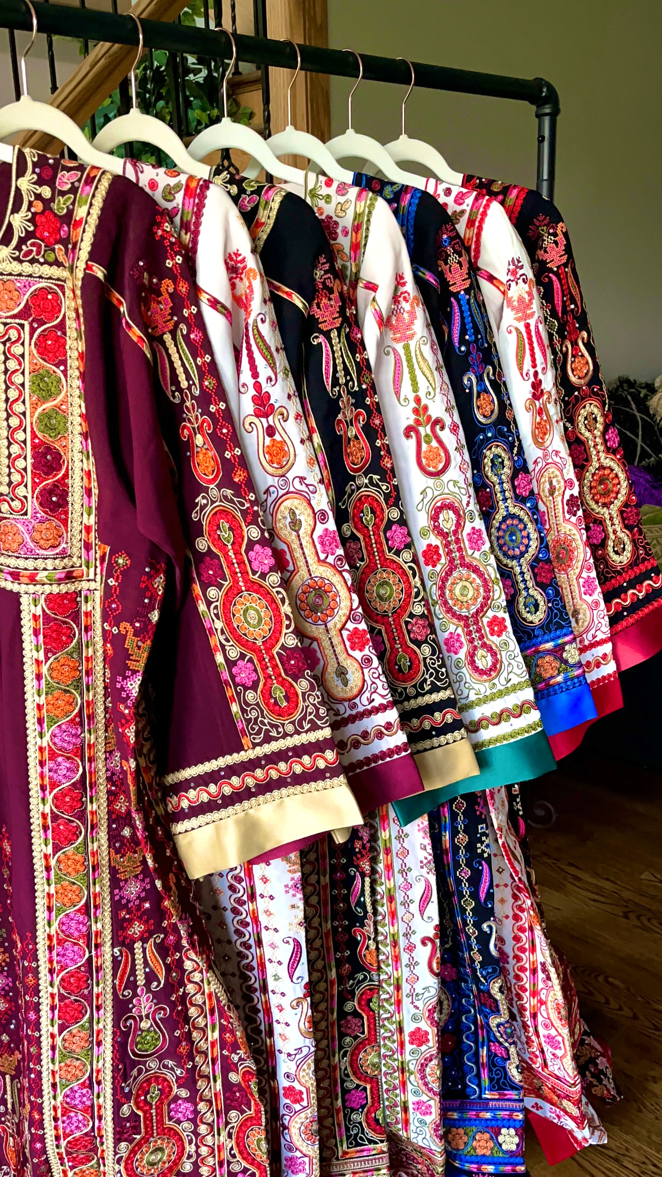 At the heart of our work is the thobe—a long, flowing garment worn by our ancestors for centuries across Palestine, Jordan, and the Levant. Each thobe carries within it a piece of history. With every stitch, a story is told—of the villages and cities it came from, of the olive trees and rolling hills, of resilience, faith, and identity. The patterns are not mere decoration; they are symbols of home, of memory, and of the unshakable spirit of our people.