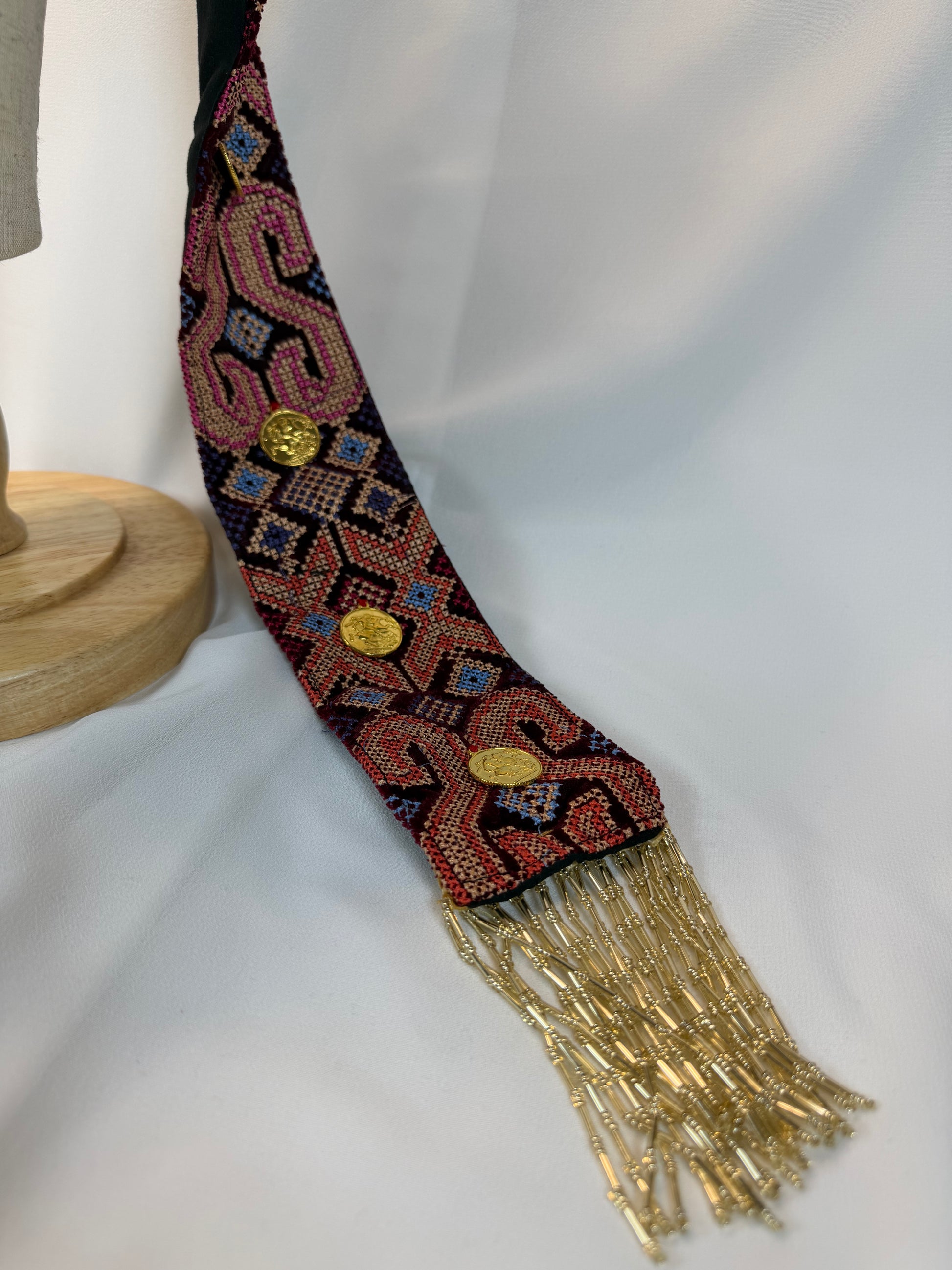 - This hat is machine-embroidered, hand-stitched, and is sold as seen in the pictures listed, including all gold coins and attached parts.