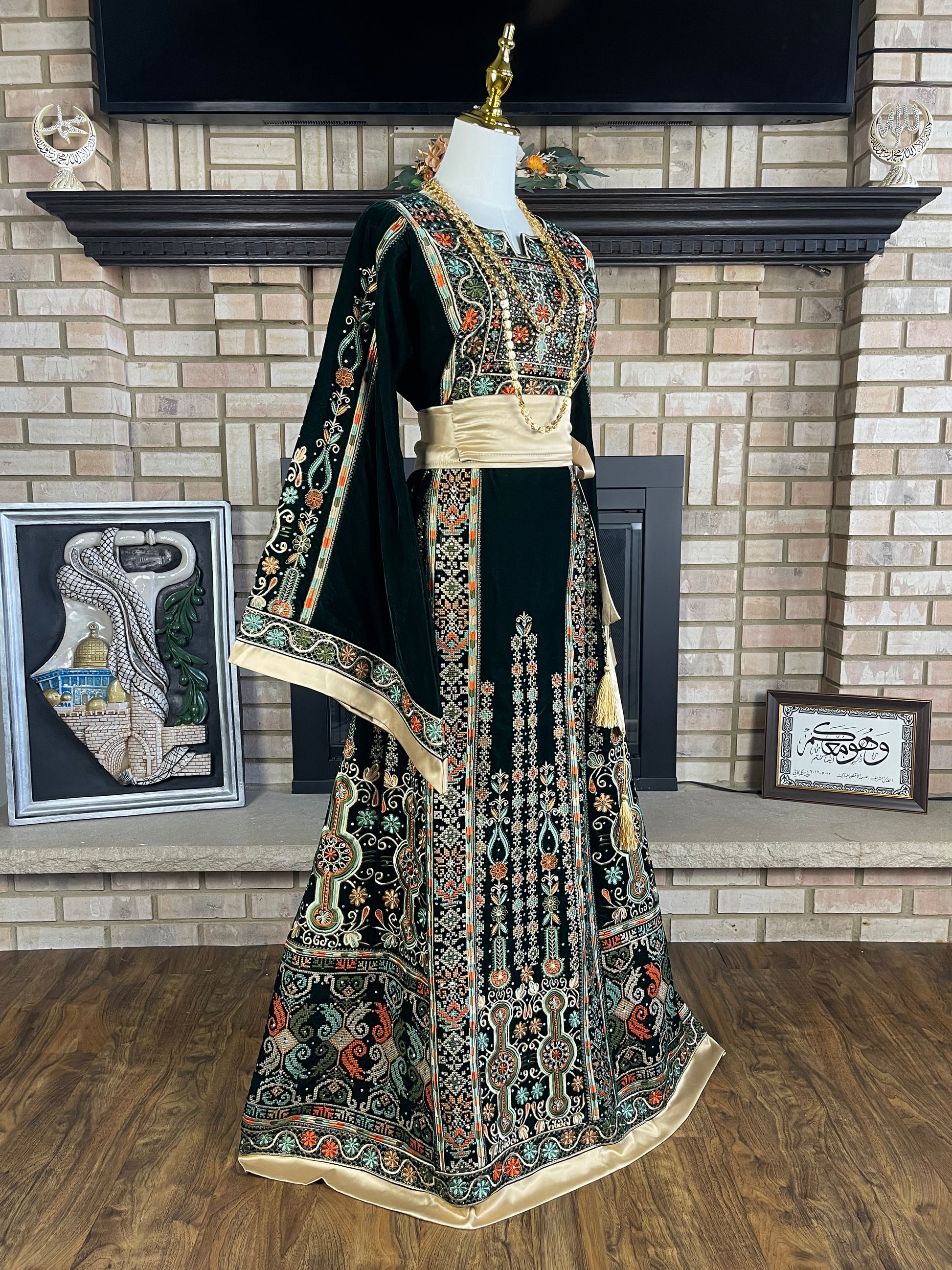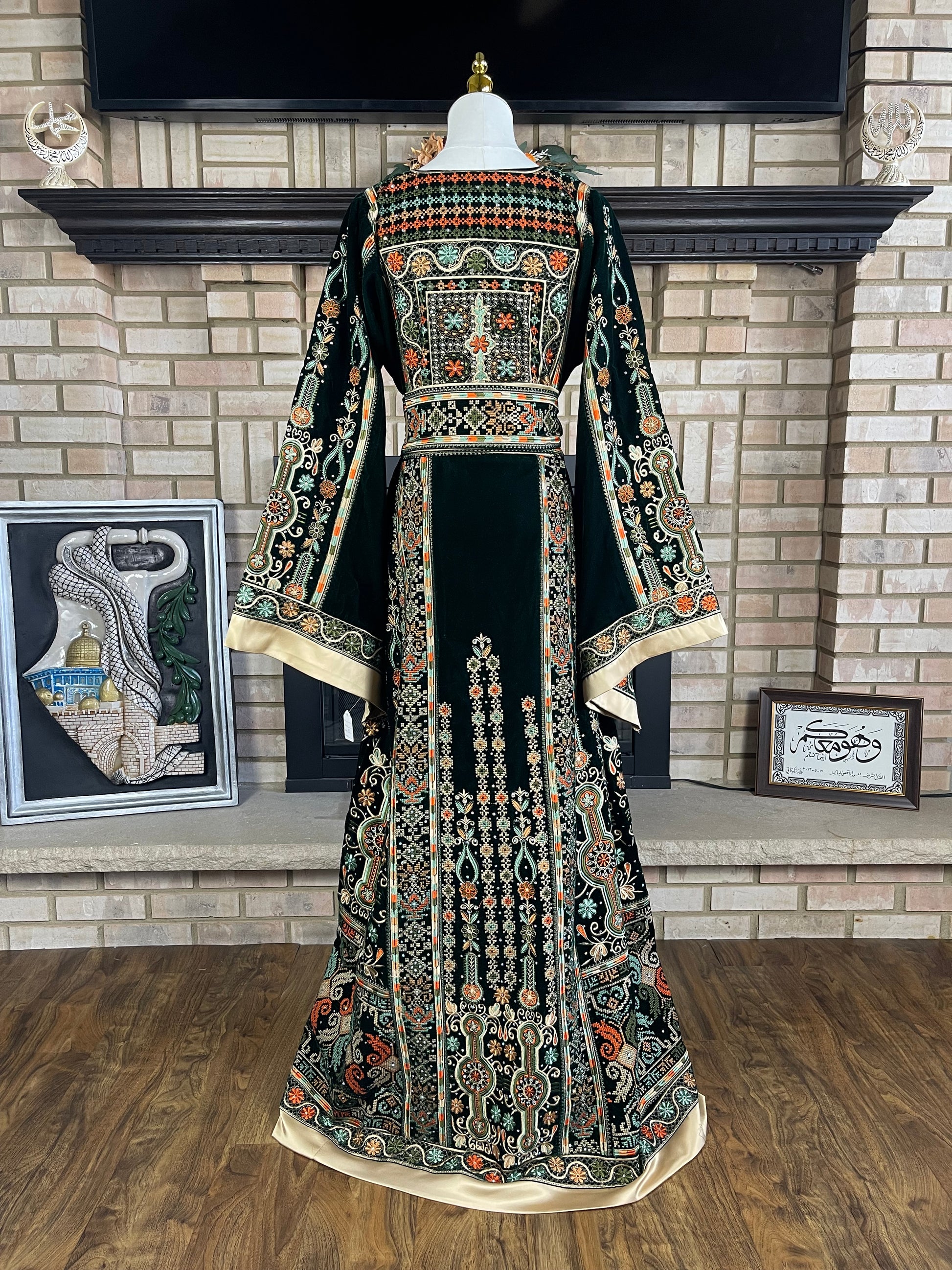 Please note that this thobe is only available in limited quantities. The color of this thobe is dark green, and might appear black in dim lighting given the nature of velvet fabric. The size of our velvet malaka thobes run on the smaller side.